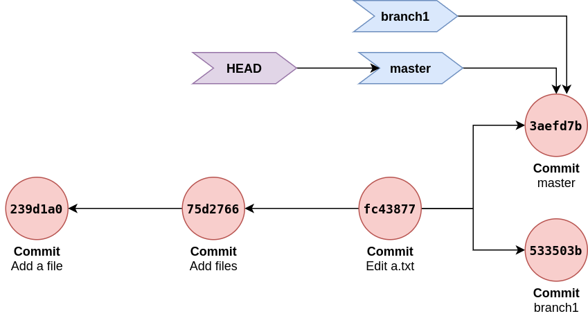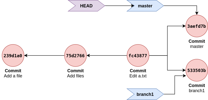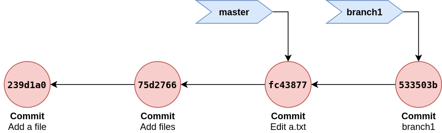 $ cat .git/refs/heads/branch1 # refers to same commit as master