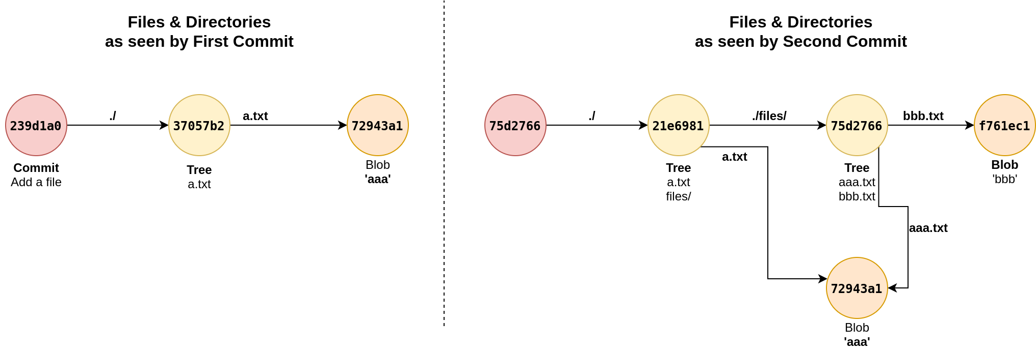 This refers to say that the project has only blob (a file not a directory) named a.txt in base directory. So content of this file can be read from hash value.
